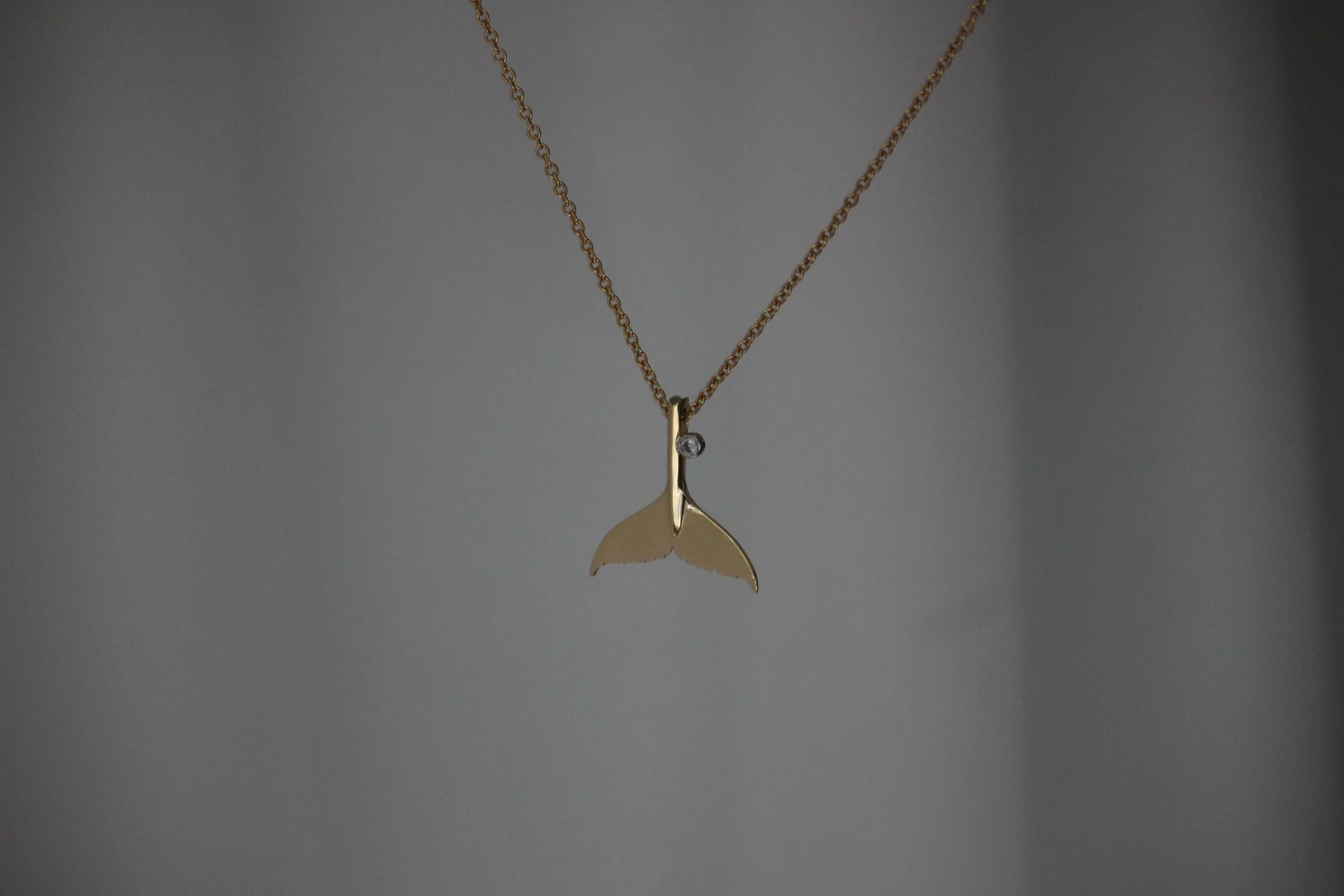 Below are current available pieces from the Ocean Tails collection. Dolphin Tail Pendant Whale Tail Pendant Whale Tail Pendant with Speckles Two Tone Tail Pendant Dolphin Tail Pendant with Diamond at top of flute Whale Tail Pendant with Diamond on side of flute Whale Tail Pendant with double Diamonds Whale Tail Pendant with Diamond on fin Necklace Chains Whale Tail Heart Drop Necklace Whale Tail V Drop Necklace Whale Tail O Drop Necklace Dolphin Stud Earrings Whale Tail Stud Earrings Dolphin Tail Drop Earrings Whale Tail Drop Earrings Whale Tail Short Drop Earrings